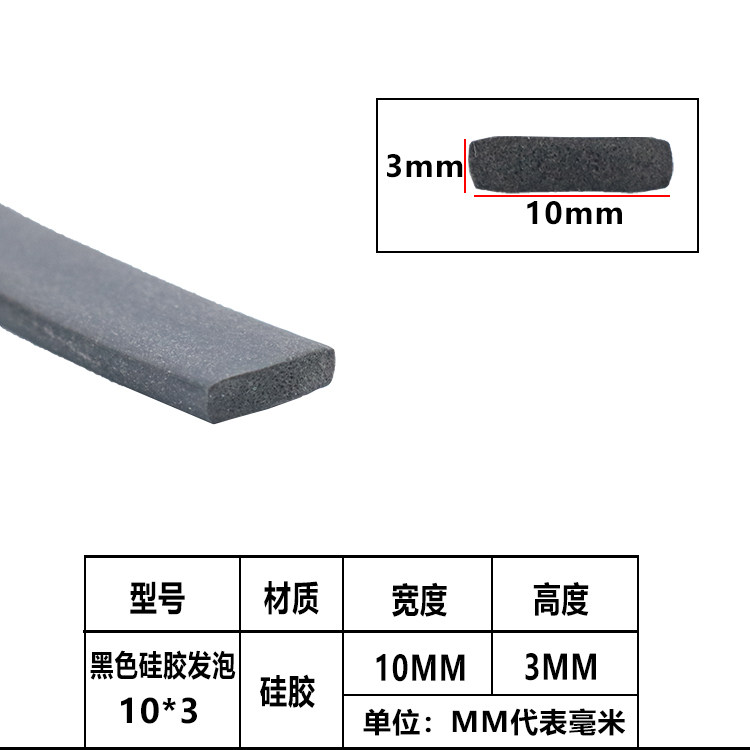 High temperature resistant silicone foam sealing strip with adhesive sponge strip single side with glue flat strip flat 1 word square strip self-adhesive