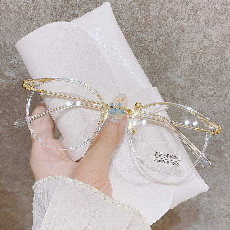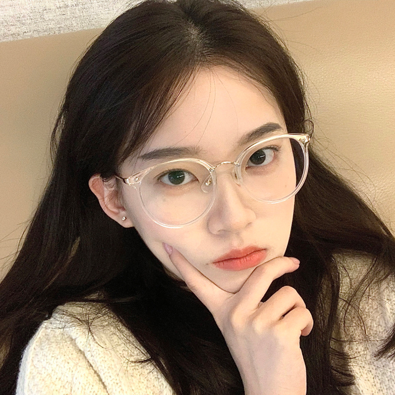 Myopia glasses women can be equipped with astigmatism retro transparent ins round frame big face slim plain red glasses frame