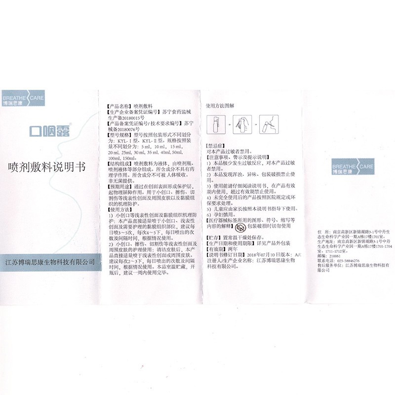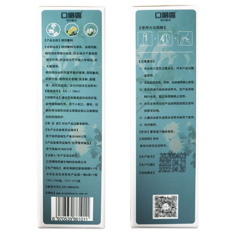Dressing for the mouth and pharyngeal dew spray