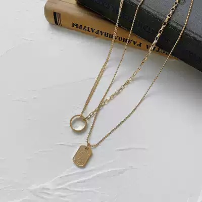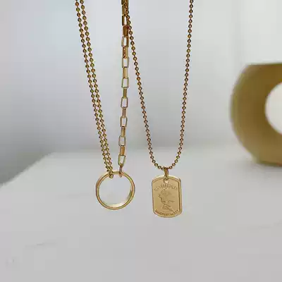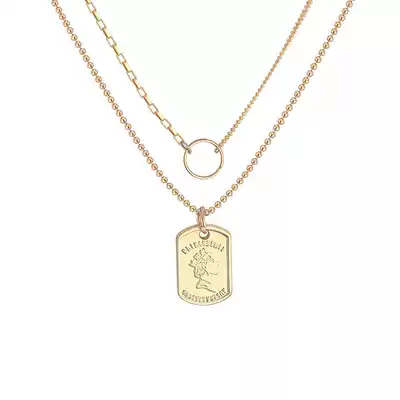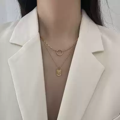 Sweater chain necklace female ins hip-hop fashion brand European and American retro head portrait folded don't fade autumn and winter high-end double layer