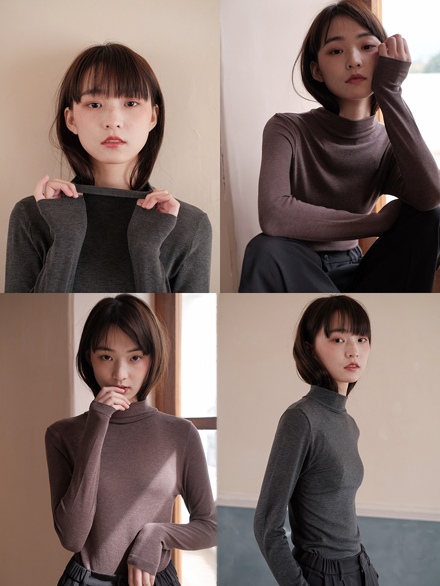 Xinbang help Bra autumn and winter solid color Meiya bi semi-high neck slim slim warm underwear women's undershirt can be worn outside