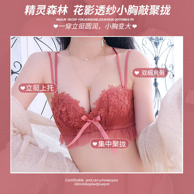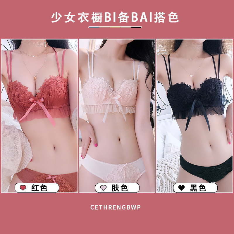 Lingerie women's small breasts gathered without steel rings Wen bra underpants One suit sensual sensuality apologele chamelea chameleback