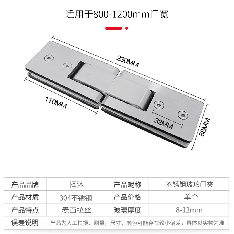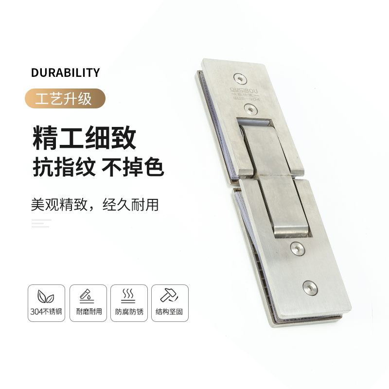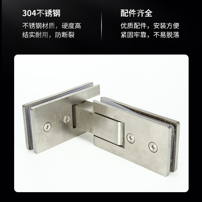 Glass door hinge 180-degree shower room hinge bathroom clip strip door clip high-end glass door 304 stainless steel