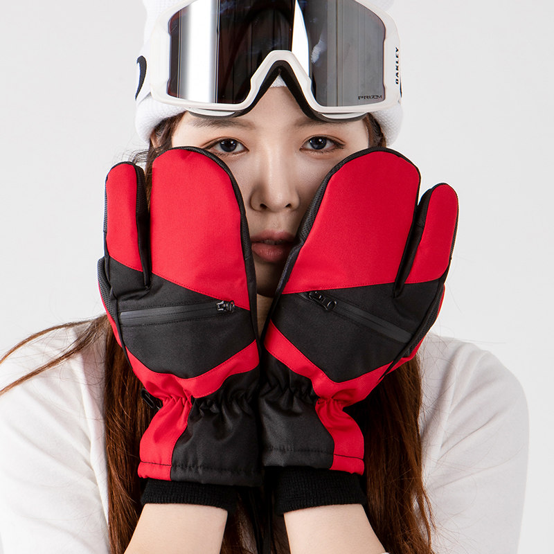 XXXsnow waterproof and cotton winter ski gloves men's and women's veneer gloves three-finger wear-resistant waterproof can put snow cards