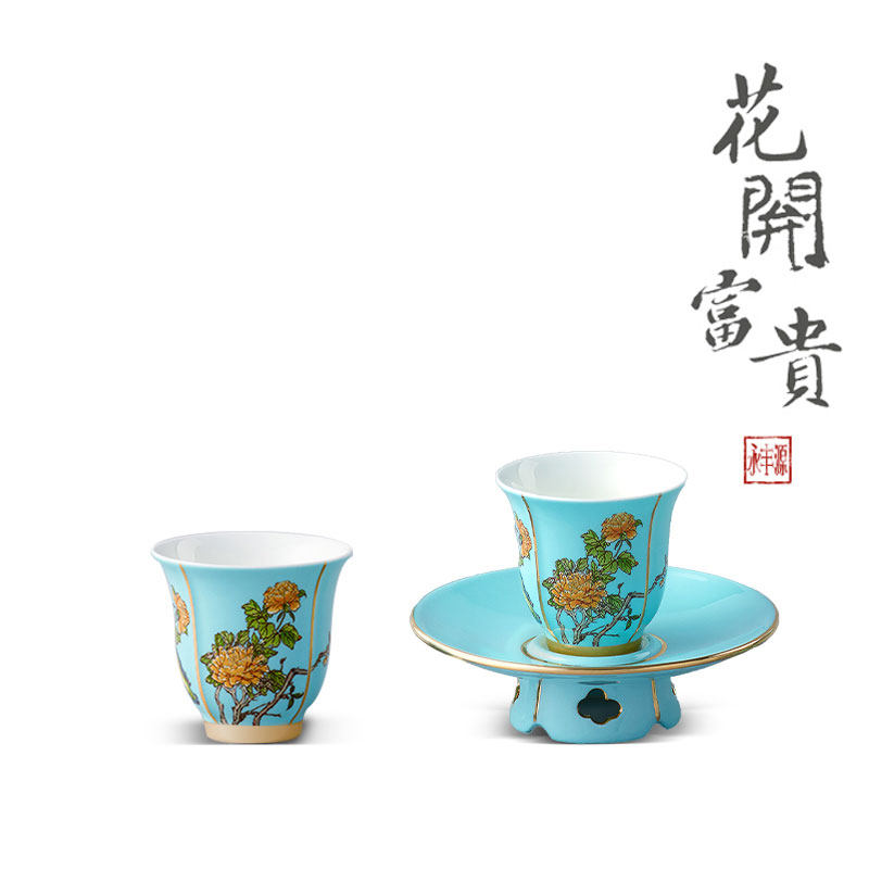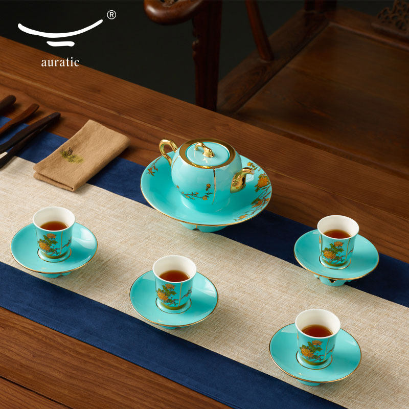 Auratic Yongfengyuan Lady Porcelain West Lake Blue 2-Head Ceramic Kung Fu Tea Set Tea Set Tea Cup Saucer Tea Ceremony