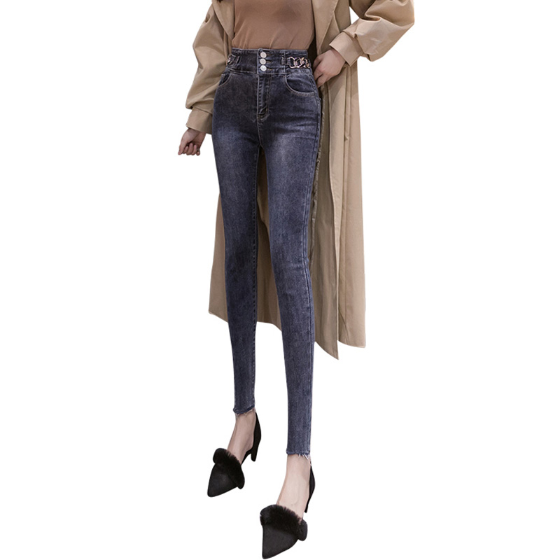 Gush Jeans Woman High Waist Winter 2020 New Body Slim Fit Slim Pencil Long Pants Stretch Narrow Leggings Hairy Side Tide