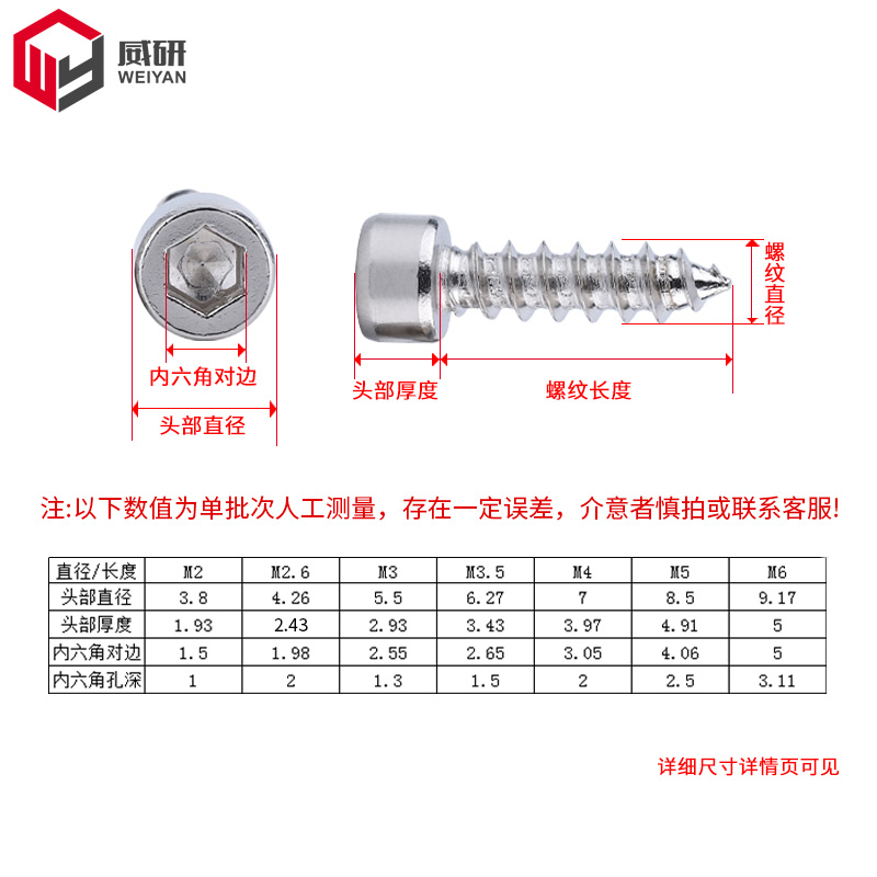 304 stainless steel inner hexagonal self tapping screw cylindrical head self-tapping nail cup head tip tail screw M4M5M6