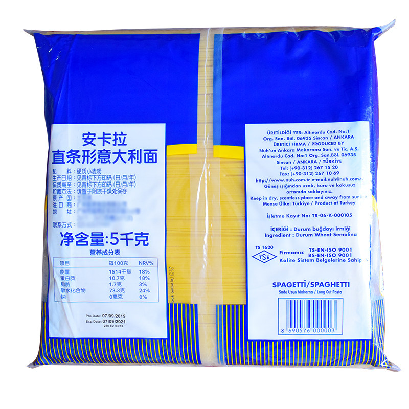 Anoni Italian 500g*20 bags straight Type Italian noodles 5kg*1 bag straight Italian noodles 5kg*2 bags Whole box straight Italian noodles 500g*20 bags Whole box full box of Both ends pointed