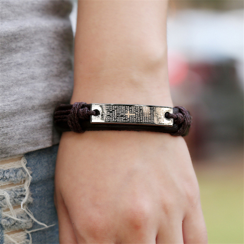 Leather alloy bracelet scripture leather bracelet bracelet links Japanese men and women punk jewelry