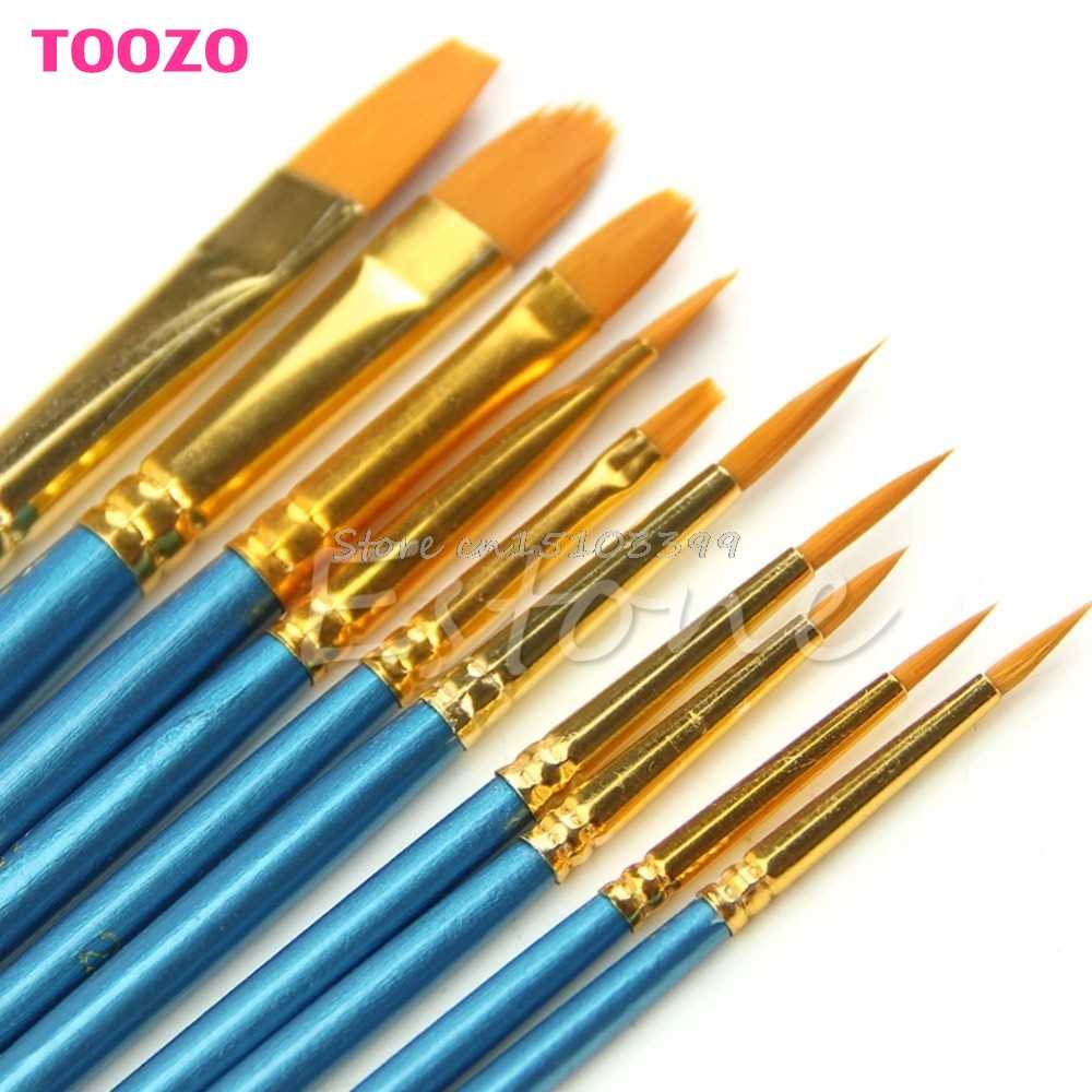 10Pcs Round Pointed Acrylic Watercolor Tip Nylon Hair Artist
