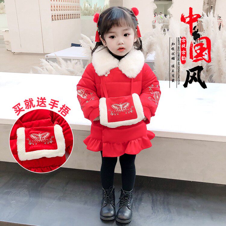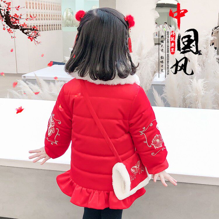 Children's Chinese New Year Hanfu winter thickened cotton-padded clothes Chinese style festive clothes New Year's clothing baby girls New Year's Tang suit
