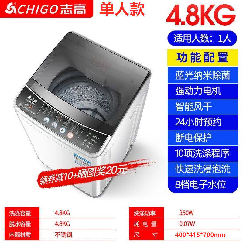 Zhigao fully automatic washing machine 4 8 7 5 8 5 kg Dormitory Small Home Mini Large Capacity Dump Dry