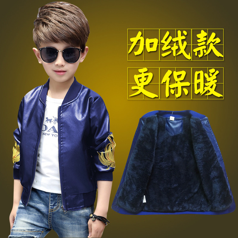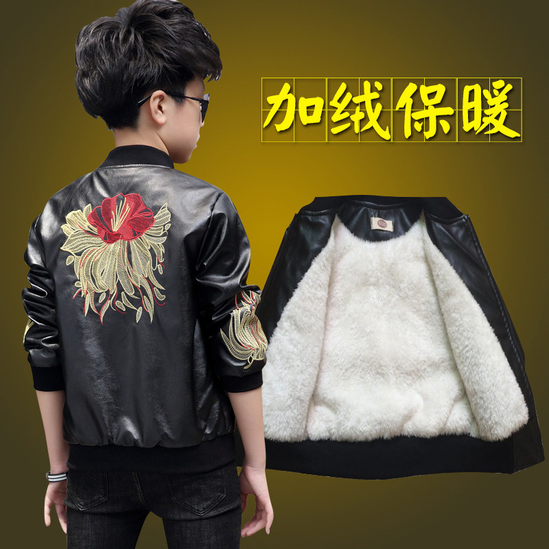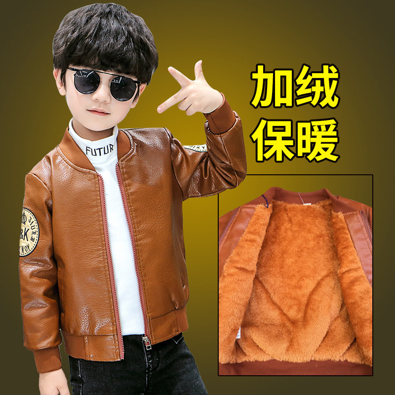 Boy autumn winter jacket plus suede thickened leather clothes 2020 new major child jacket handsome children pu Pio pai blouses