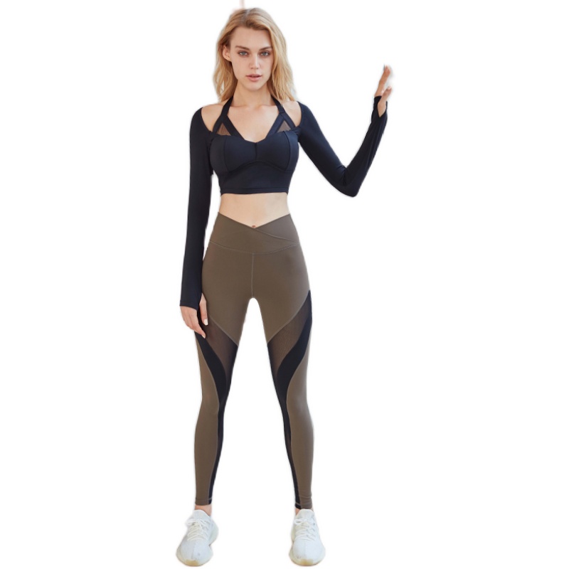 WISKII Light Luxury Laka Fake Two Pieces of Wears Specific Long Sleeve Sports Yoga Fitness Clothes in Autumn and Winter