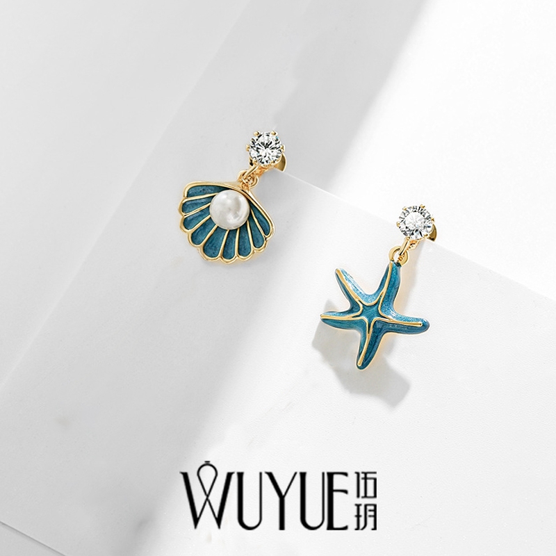 925 silver needle pearl earrings feminine tassel earrings starfish shell asymmetrical drop earrings summer 2021 new