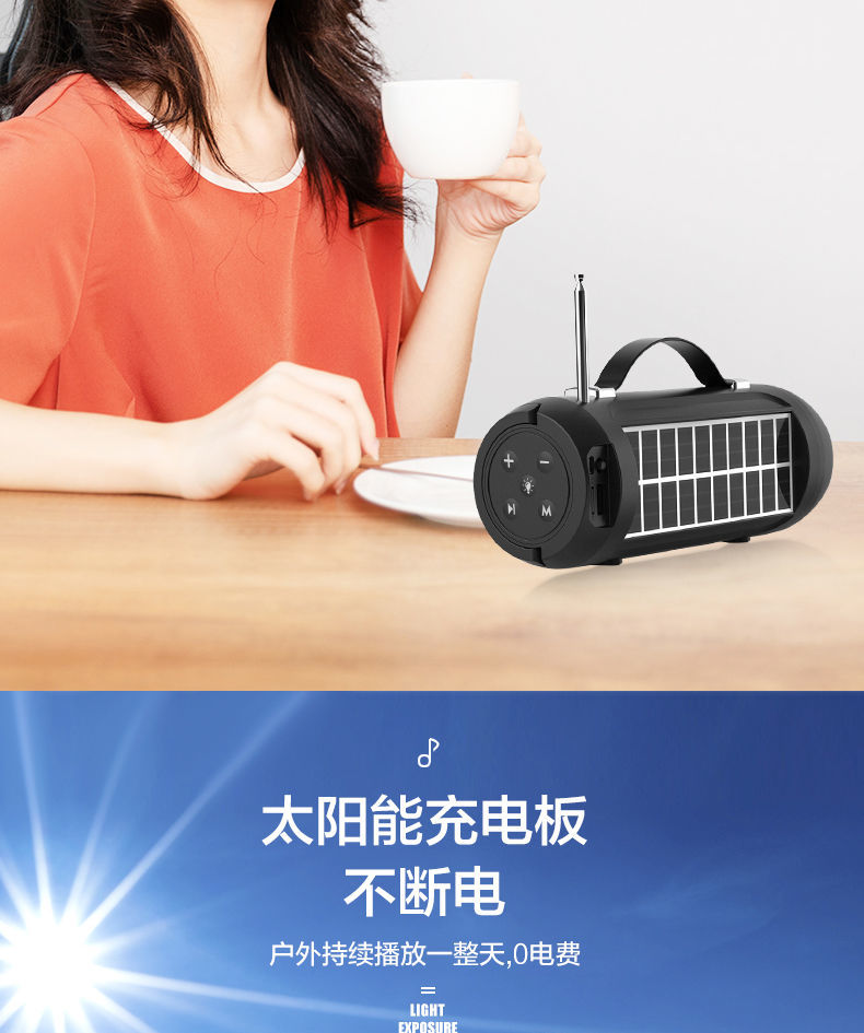 Solar Bluetooth card for elderly Mini small sound box portable music player with body to listen