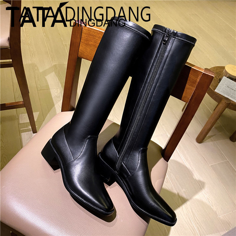 TATA DINGDANG Official high cylinder but knee boots woman She's his female shoe riding boots genuine leather long cylinder long boot