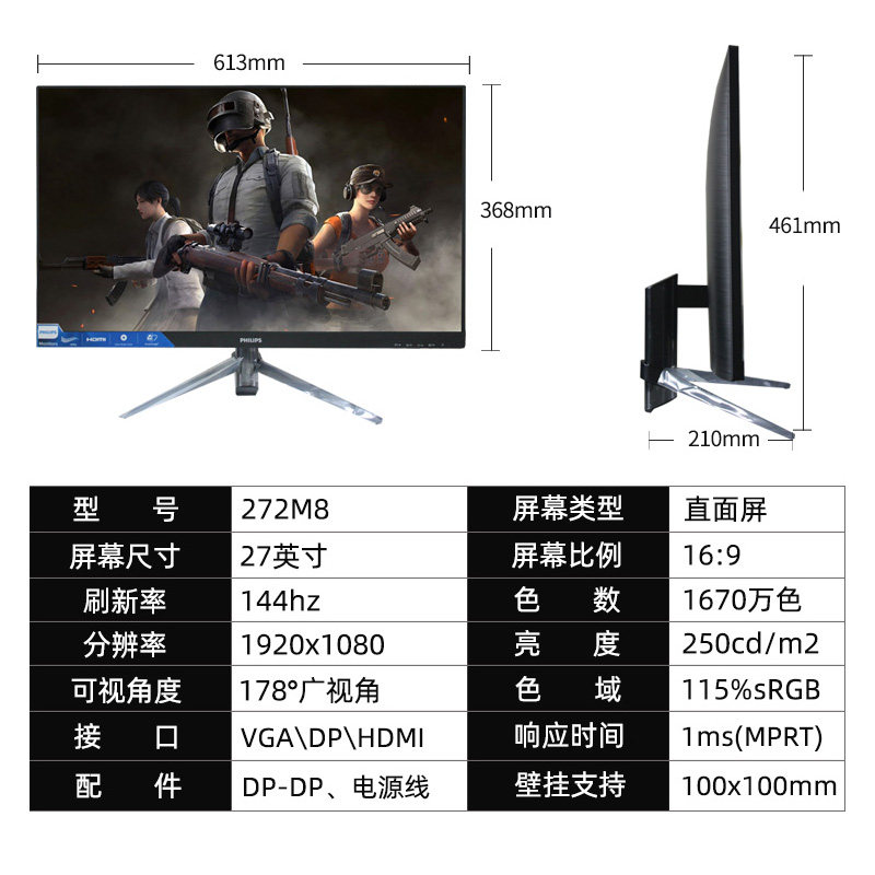 Philips 242M8 23 8-inch 144hz gaming game IPS Little King Kong display HD screen 272M8