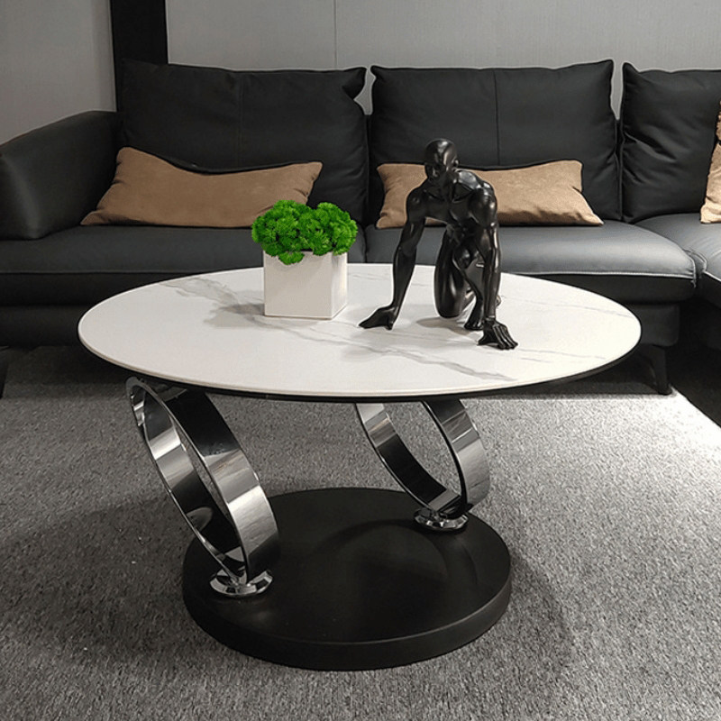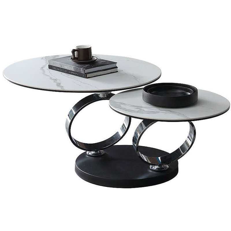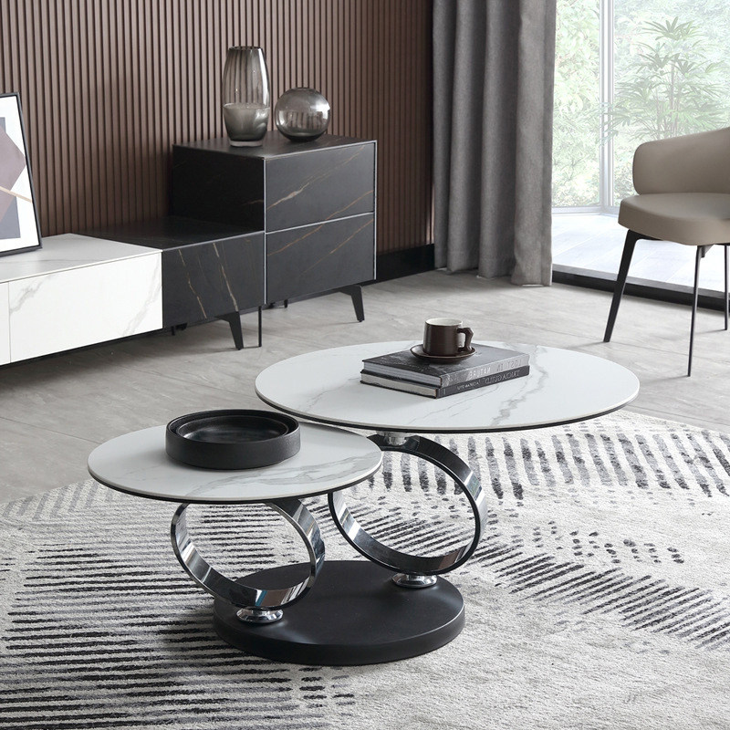 Italian-style natural slate revolving coffee table multi-functional small apartment metal design modern living room telescopic round tea table