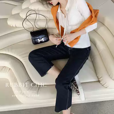 Rubber chic 2020 winter new products make you leg type high waist wide leg small straight denim cropped pants