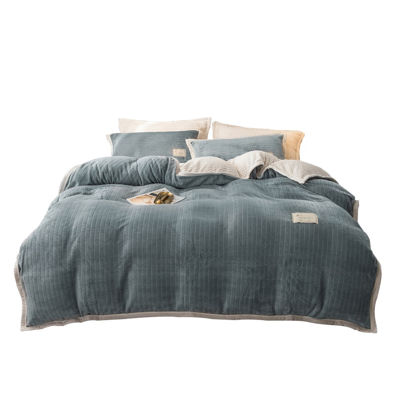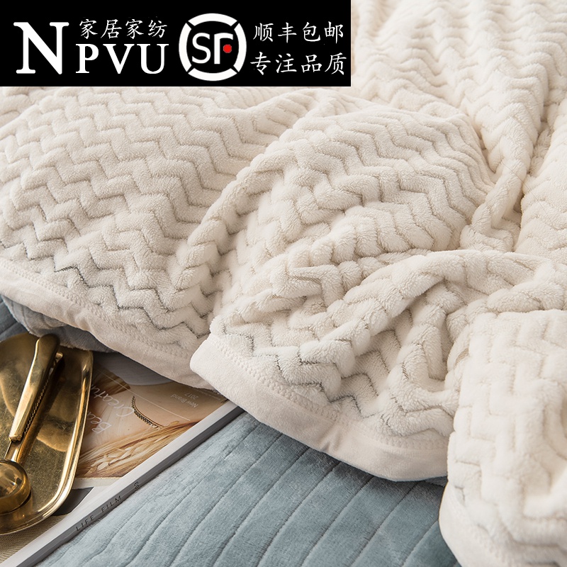 NPVU Winter Coral Velvet Four Pieces Winter Thick Flahwet Double-sided Milk Fallenwood Bed Bed with Three Pieces