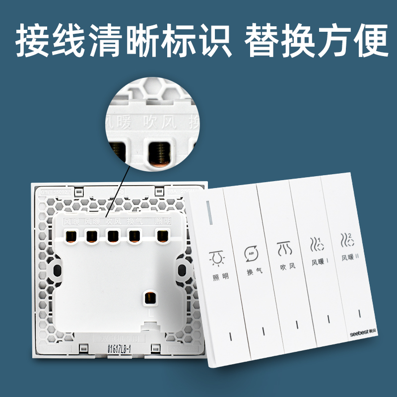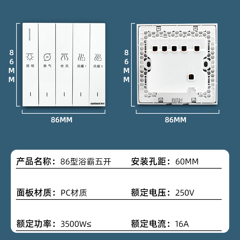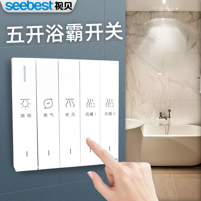 Shiba Yuba switch five-open home bathroom toilet universal 86-type powder room 5-in-1 large plate heating wind panel