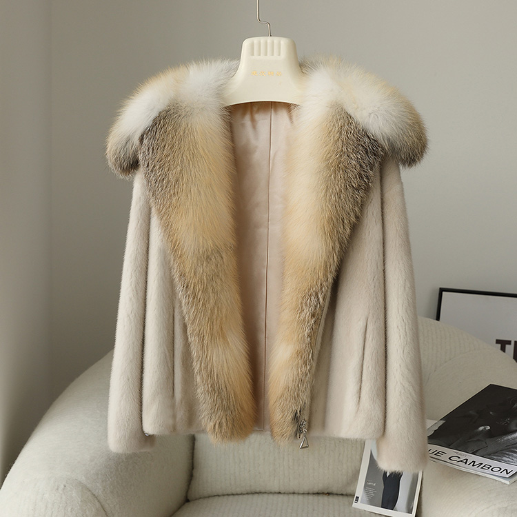 New fox fur collar female mink mink fur coat short velvet mink coat women's whole mink fashion