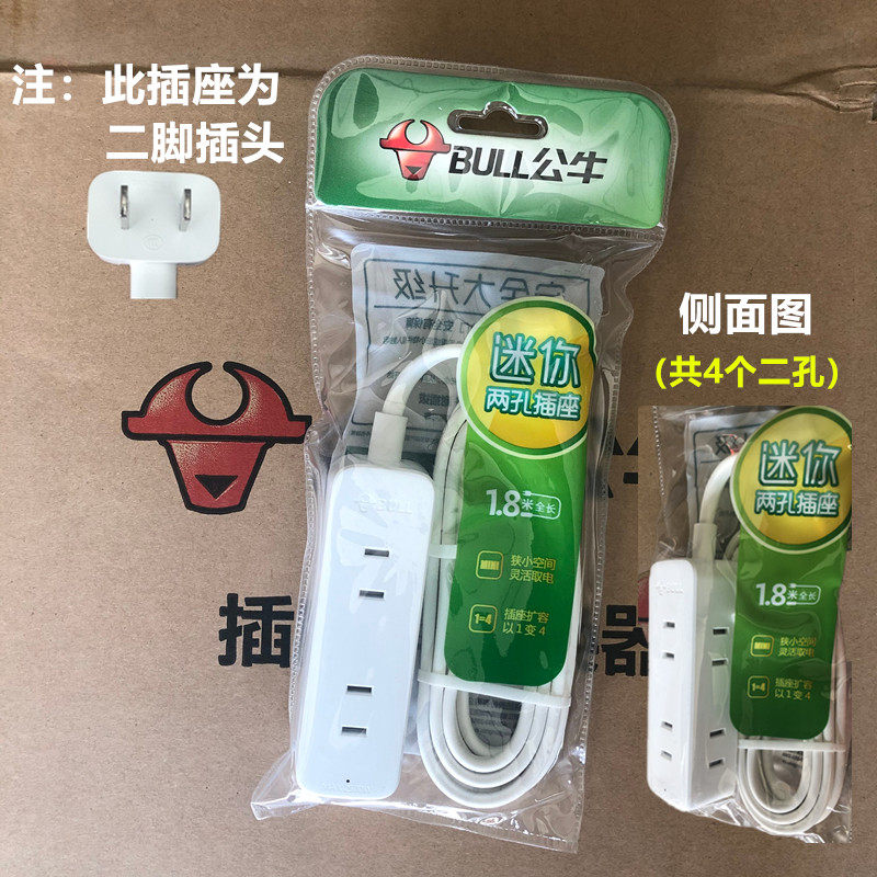 Bull two-pin socket plug extension cord power extension two-hole two-jack plug-in board with line mini small socket
