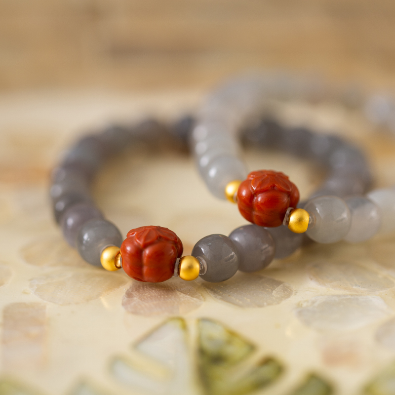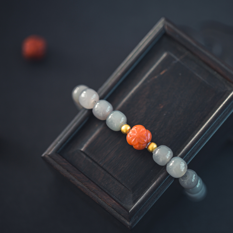 Autumn Maple Dew Tobacco Green and Tian jade Old-shaped beads full of meat South red persimmon Ancient Pharaoh Gold Hand Strings of Purple Hands