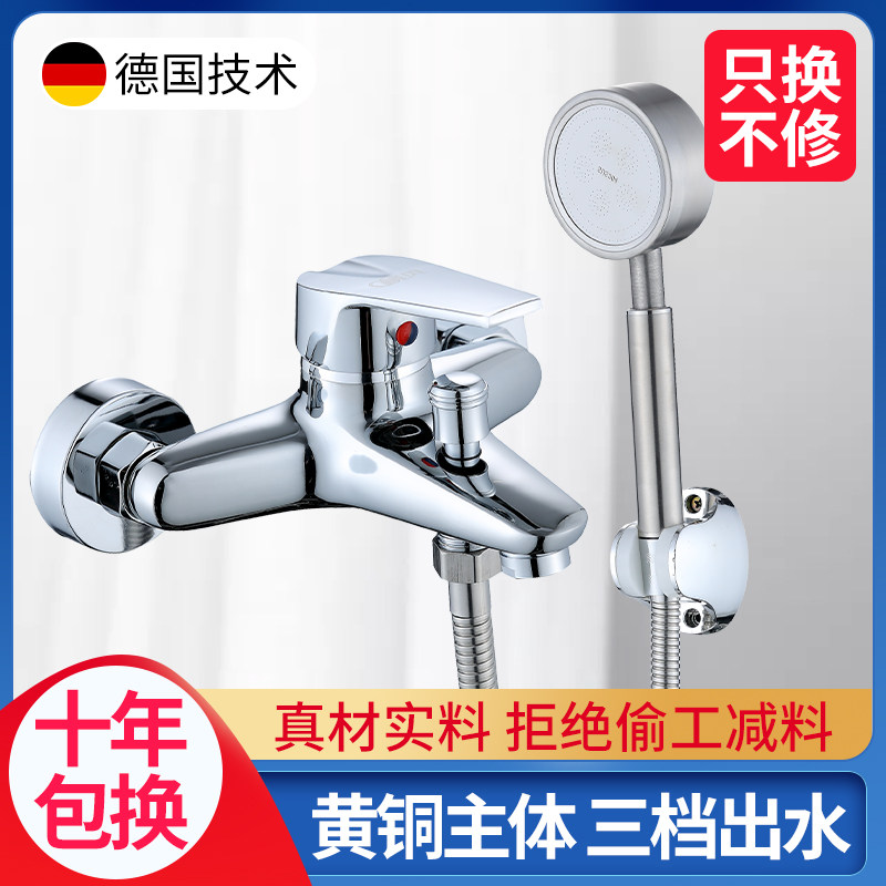 Full Copper Mixed Water Valve Hot & Cold Shower Faucet Bathroom Bathtub Dark Bathtub Triple Mixed Switch Rain Shower Set