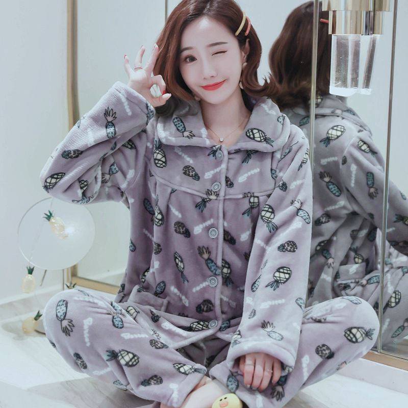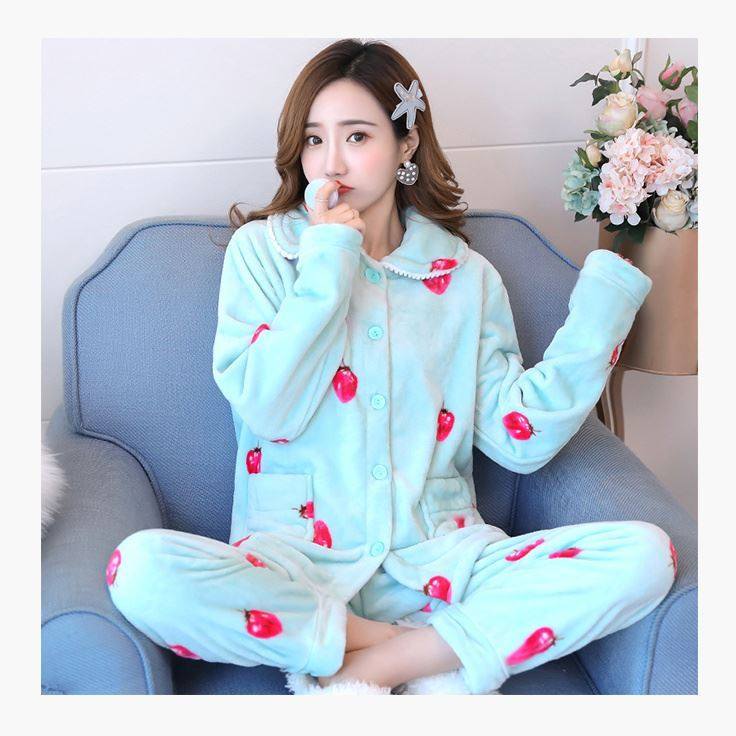 Milk velvet warm clothes coral velvet pajamas female orchid three lakes book Fushan velvet summer clothing velvet French blue autumn and winter thickening