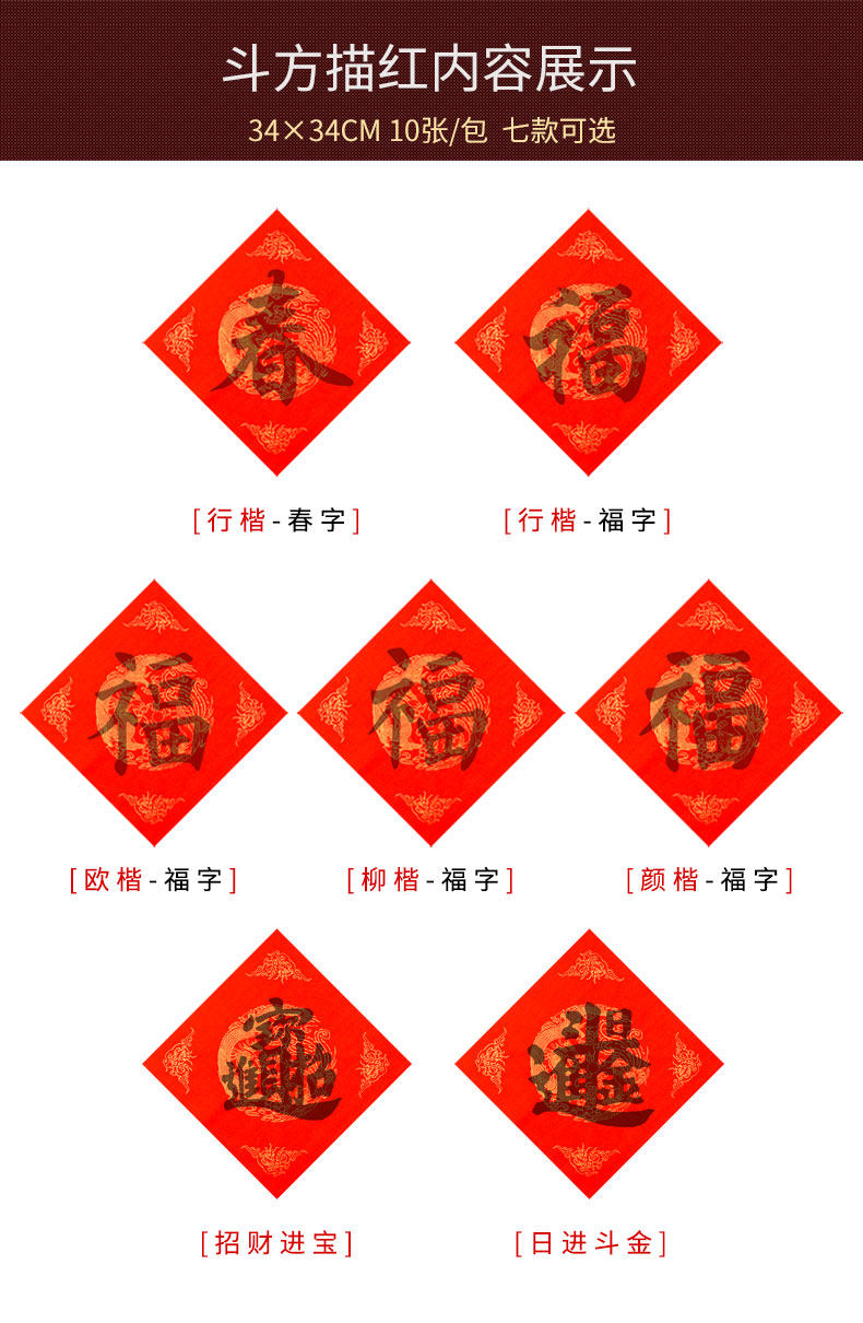 Play the Red Sketch Red 20 different 13 * 34CM blank wave spring 20 15 15 * 40CM year with fish waving 10 14 14 * 46CM Longfeng Feng's auspicious splendour 10 Zhang 34 * 3