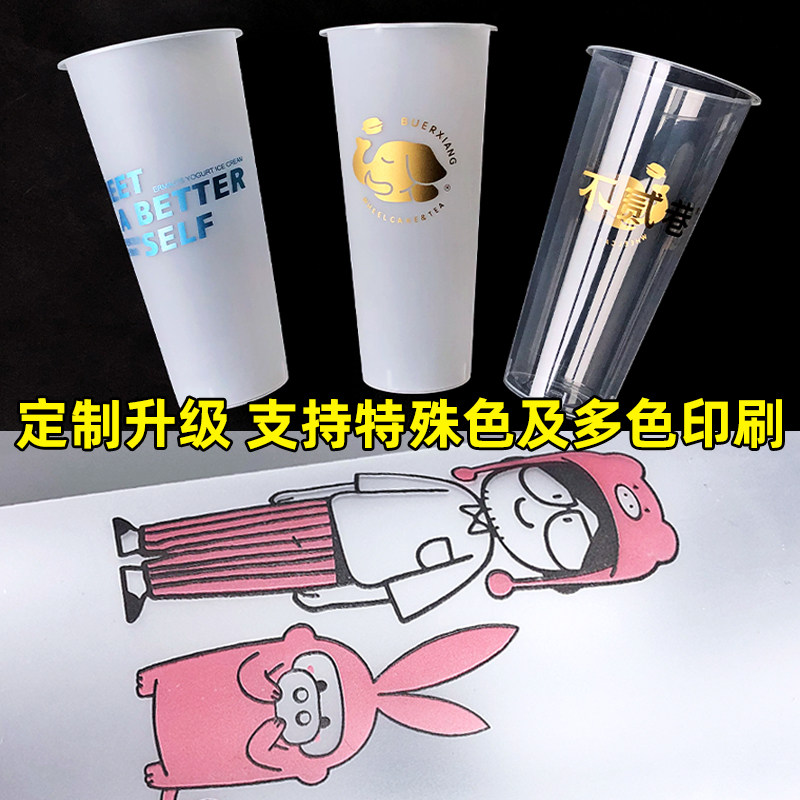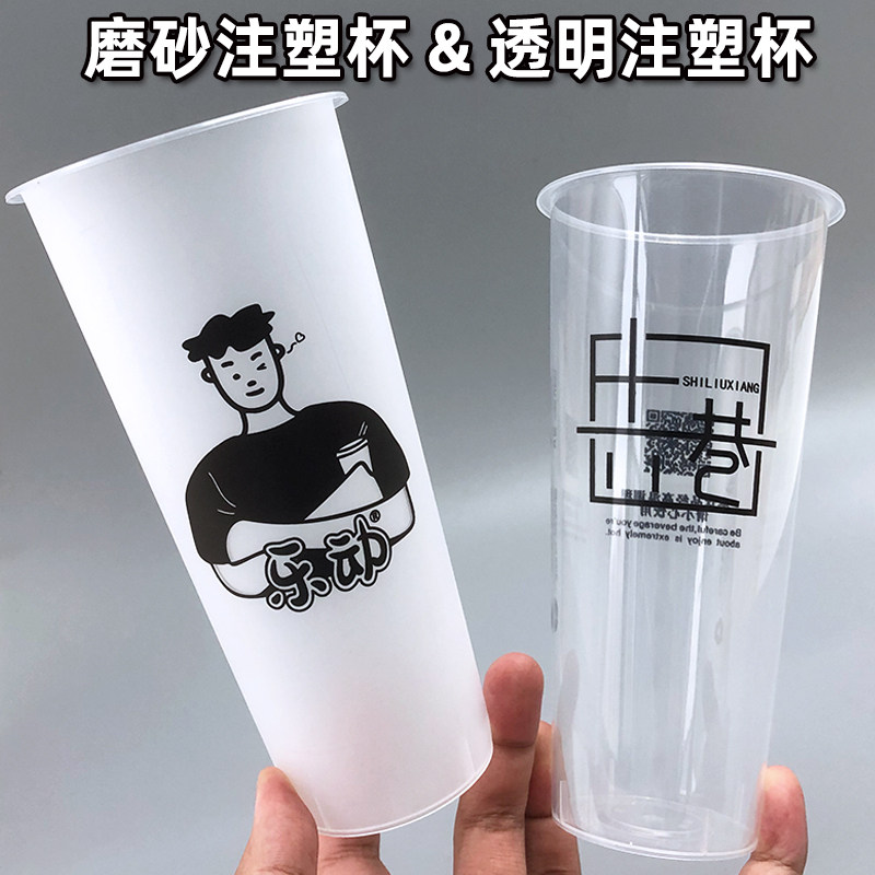 90 calibre disposable frosted injection moulding cup thickened with cover milk tea cup Commercial plastic Beverage Cup Custom logo