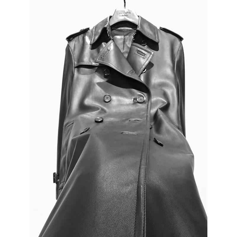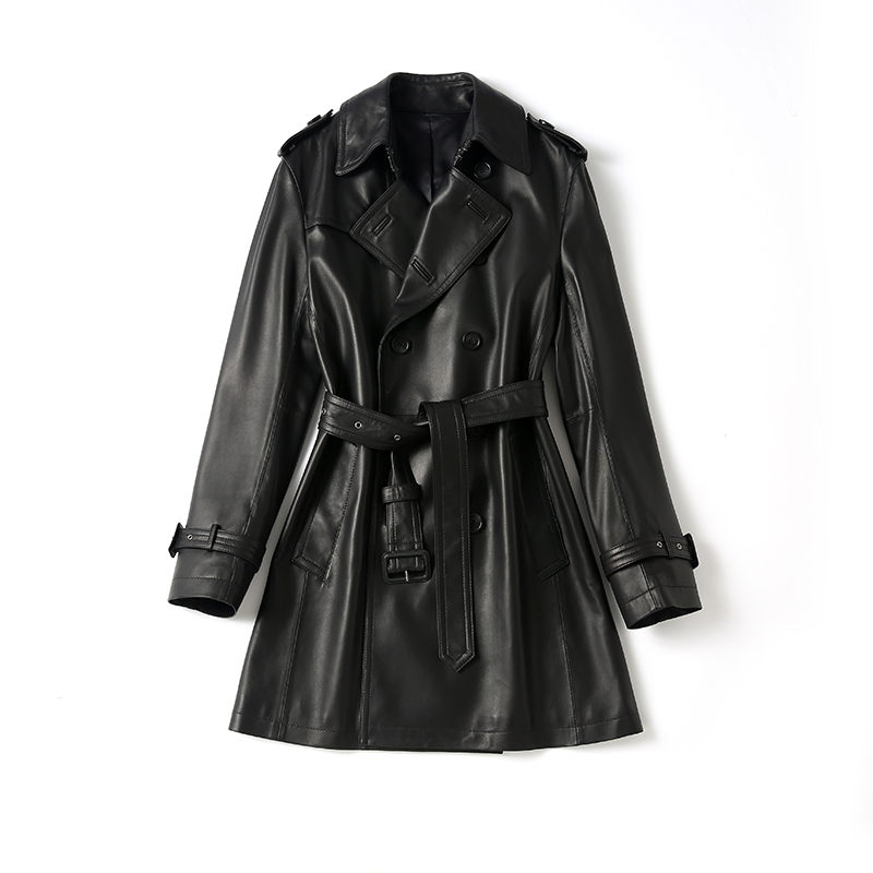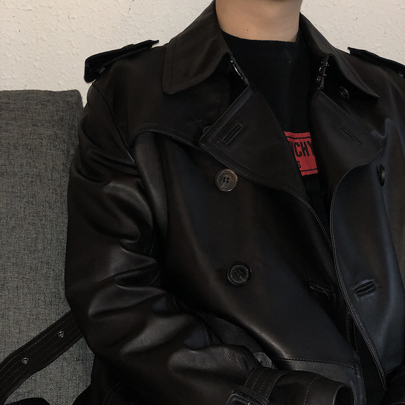 LA CALIFFA London Solid cut half-light lamb leather men's double-row button Trench wind suit