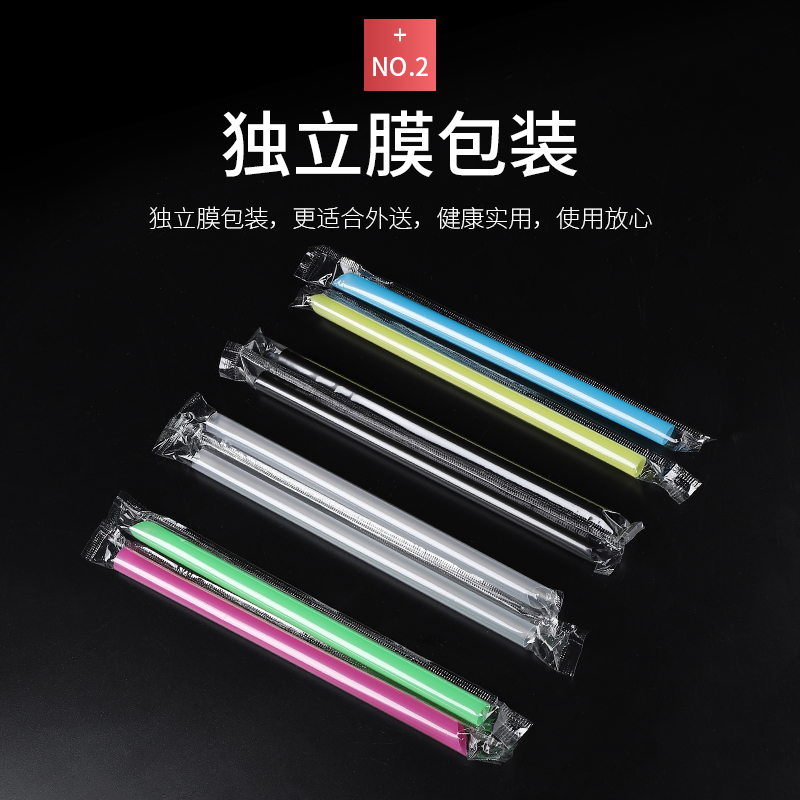 Single-disposable coarse pearl milk tea straw independently packaging plastic color transparent fruit juice large long straw