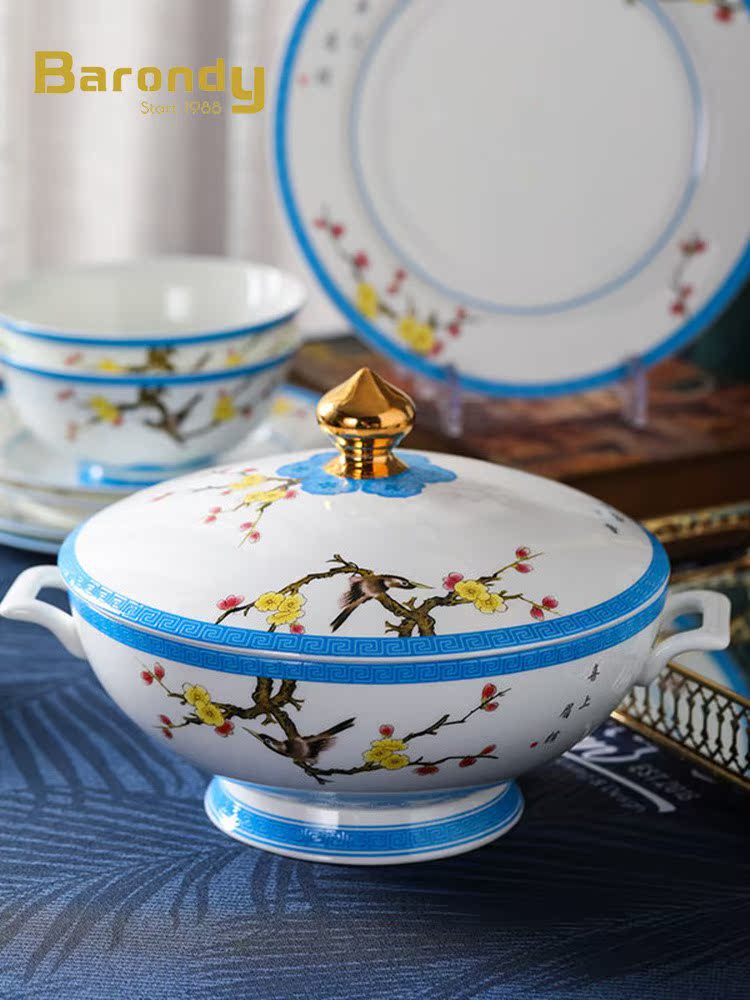 Barony Light Extravagant Cutlery Bowl Dish Chinese Enamel Color Home Suit Combined Upscale Bone Porcelain Bowl Disc Bone China