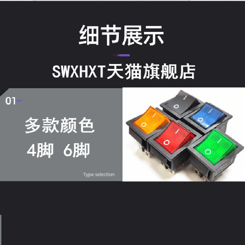 Rocker switch KCD4 boat-shaped two-speed rocker KCD8 power supply with light button square button 4 6 copper feet 16A20A