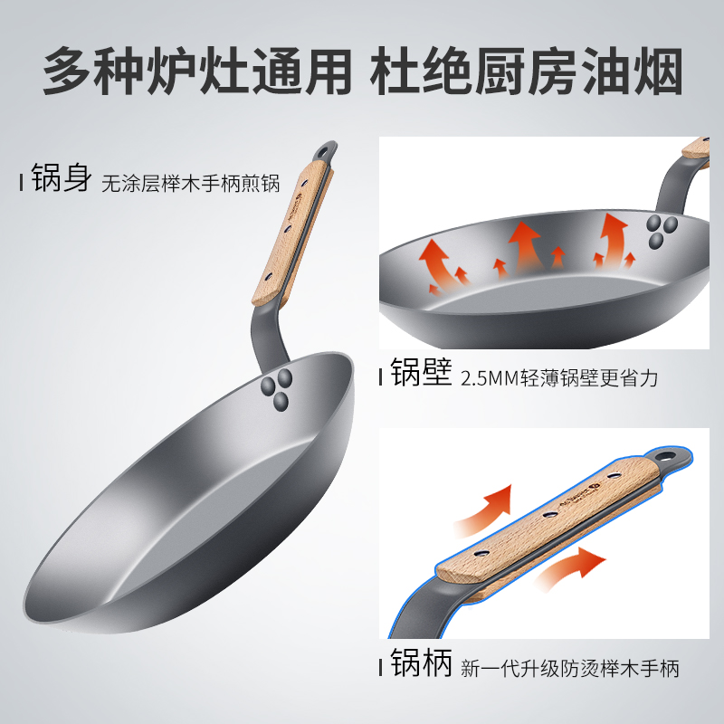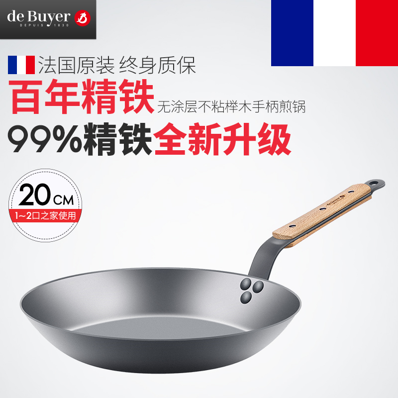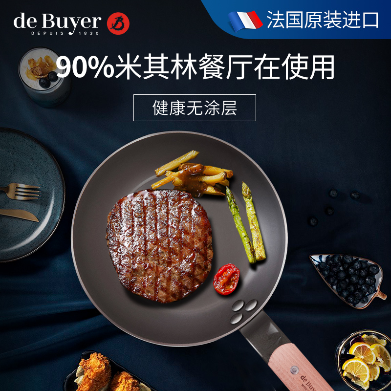 debuyer France uncoated flat bottom non-stick carbon steel pot home induction cooker stir-frying pan fine iron steak frying pan