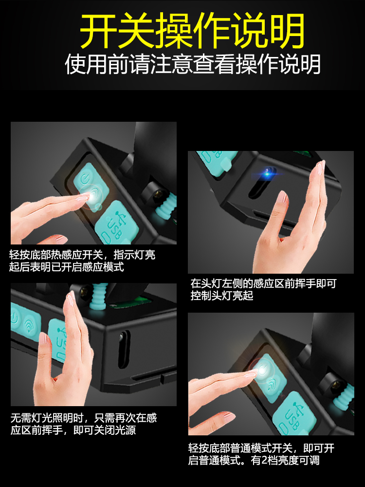 Non-inductive 8000W white light, 150 hours of battery life (with DC charging cable) Non-inductive 9000W white light, 200 hours of battery life (with USB fast charging cable) Non-inductive 9