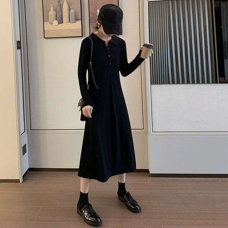 Wearing a hitch black bottomed knit foreign dress Long version of the large coat dress Thickened Inner Hitch Skirt Woman Autumn Winter Fairy