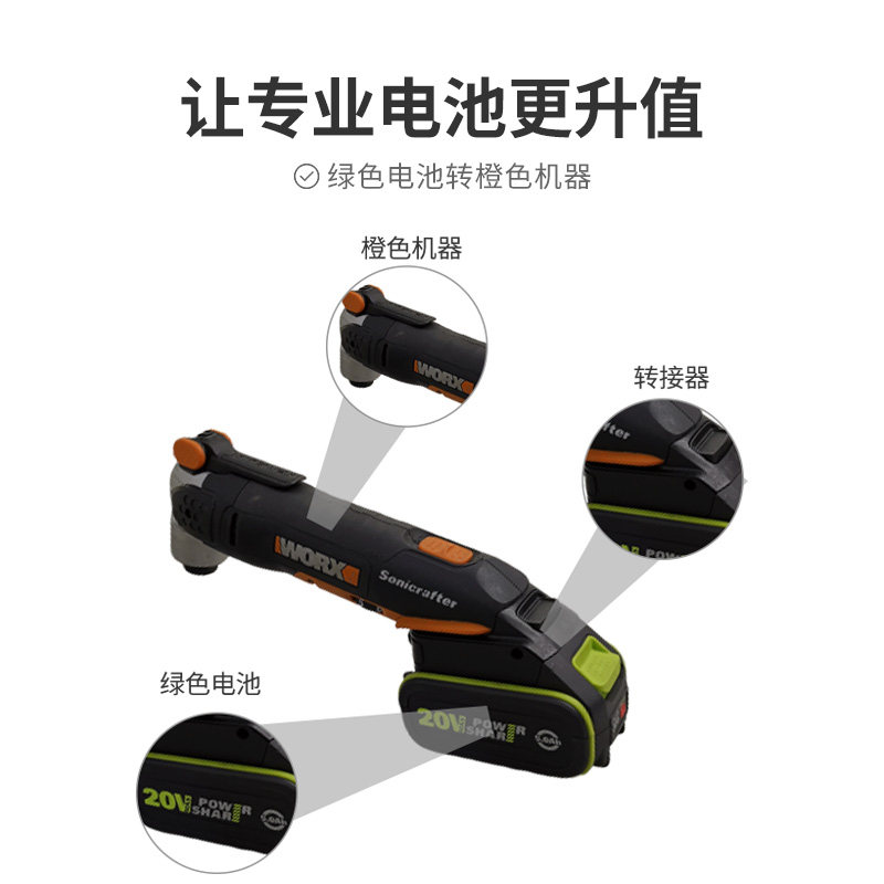 Wex WA4600 adapter worx20V lithium battery adapter green large footboard battery adapter