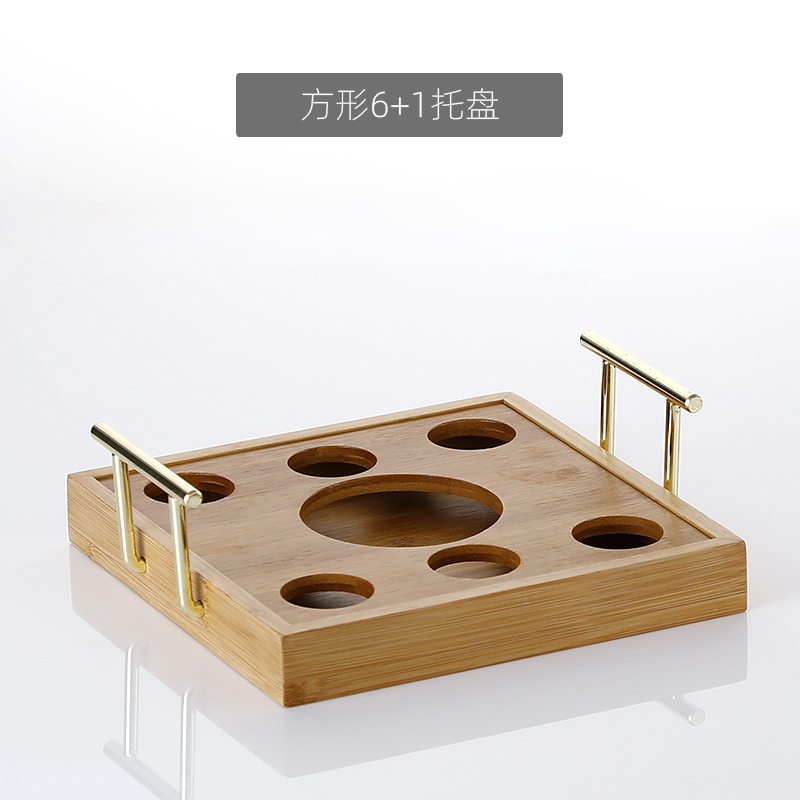 Square Bamboo and Wood Tray 12-Cup Long Wooden Rack