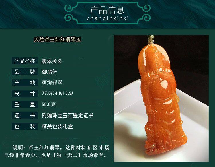 Royal Fei Xuan Myanmar jade Red Fei Guan Gong pendant Floating flowers Ruyi Peace buckle Peace card Guanyin Buddha Jade with the card