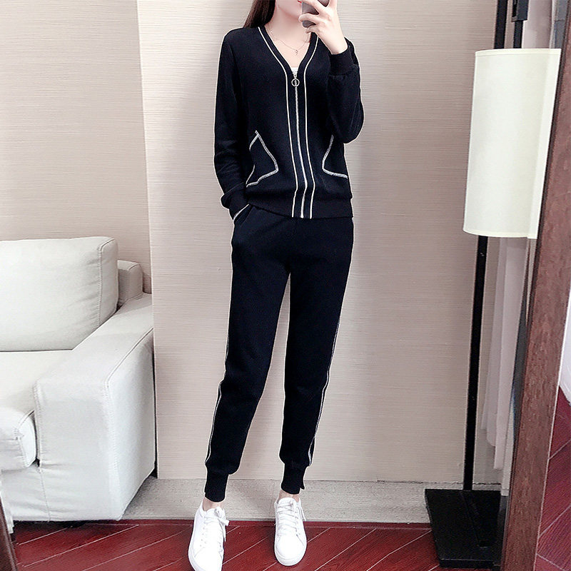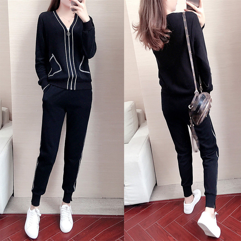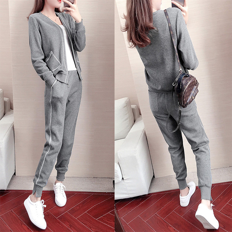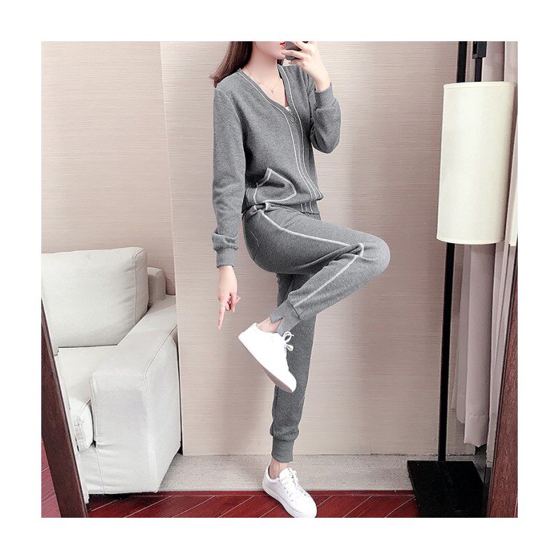 Tide brand sports leisure suit women's 2021 autumn new fashion Korean version of loose long sleeve temperament slim two-piece set