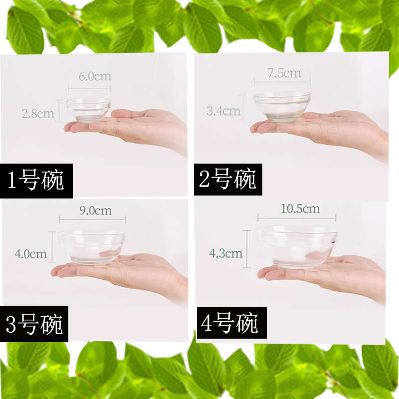 Glass bowl No. 1 (caliber 6cm)2 glass bowl (caliber 7 5cm)3 glass bowl (caliber 9cm)4 glass bowl (caliber 10 5cm)5 glass bowl (mouth)