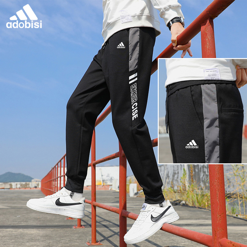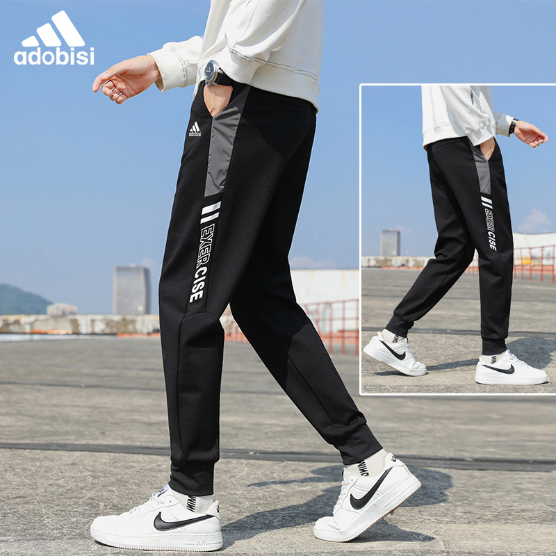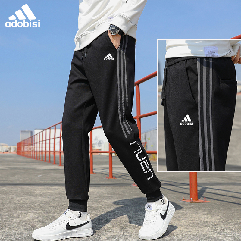 Casual pants men's autumn and winter stretch feet running pants student trend handsome striped sports trousers set women