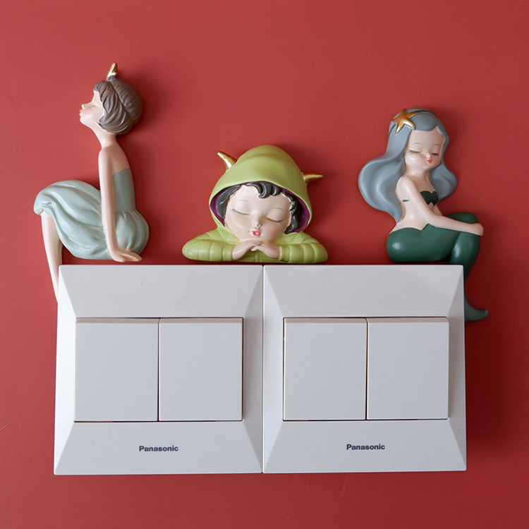 Nordic Light Lavish Teenage Girl Switch Stickup Mermaid 3d Solid Resin Creative Wall Stickins Cute Decorative Sticker