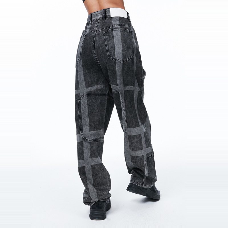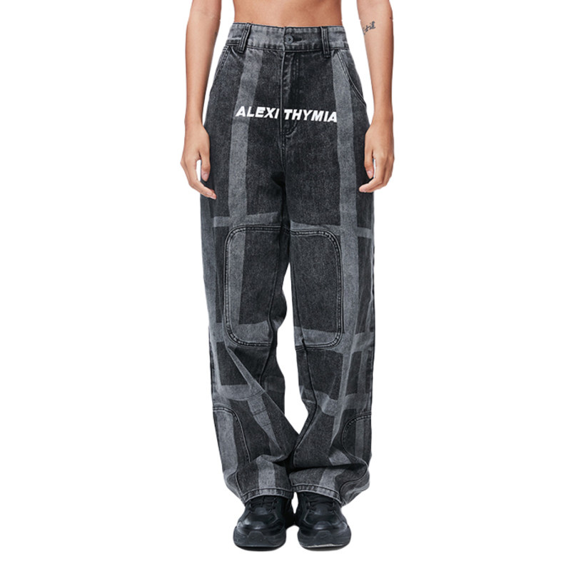 INXX SPORTS Couples Sports Paneled Jeans Casual Print Straight Trousers