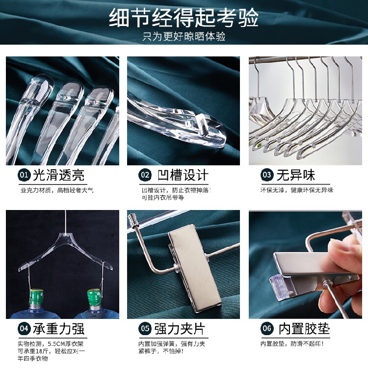 Clothes Hanger Clothing Shop Special Acrylic Transparent Hanger Light Lavish Crystal Clothes Hang no-slip anti-slip trouser clip Trouser Rack Custom