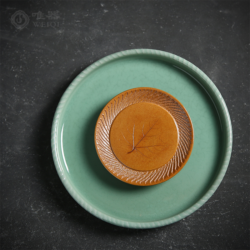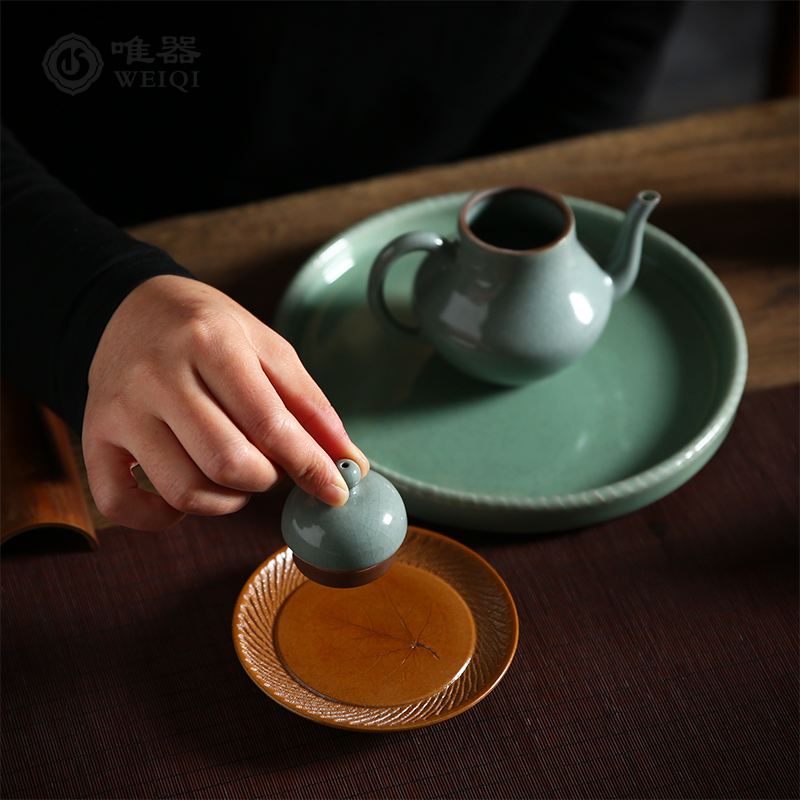 Green porcelain leaf Zhengmao full hand < one leaf know autumn > kettle bearing separated kettle bearing dry bubble table tea road accessories